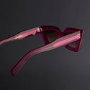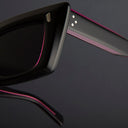 The 1408 sunglass brings a fresh perspective to 90s optics: think Madonna's 'Into The Groove' with added edge. It's shaped into a mini cat-eye silhouette that's milled and chamfered, adding depth and luminosity to the design. Oyster pins detail the front, while Hazard core wire structures the temples.