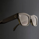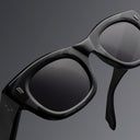 A square cat eye with a heavy profile, ideal for all face shapes and wide nose bridges.
