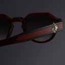 The Cutler and Gross X The Great Frog collaboration fuses heritage handiwork with gothic undertones, and these round sunglasses are exemplary. They're crafted in Italy to a flat-top design that's spliced by Sterling Silver iconography — Dagger frontal pins and Skull and Crossbones emblems at the temples. Flat, gradient lenses complete the set.