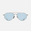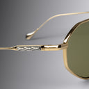 This angular aviator is handcrafted in Japan from pure titanium. Designed in collaboration with gothic jeweller The Great Frog, the sunglass is detailed with the Bones Link motif, engraved on the double nose bridge and engineered on the temples. Pure, domed titanium temple tips balance the frame.