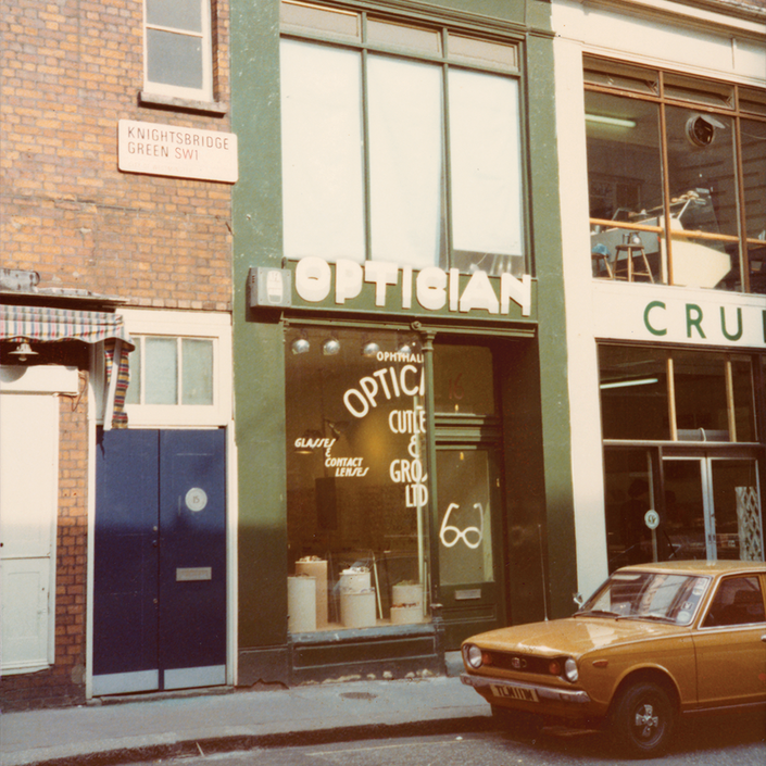 In 1971, Mr Graham Cutler and Mr Tony Gross first unlocked the doors to 16 Knightsbridge Green. Unbeknownst to them, the small yet mighty store and workshop would unmistakably shape the language of eyewear, 55 years on.